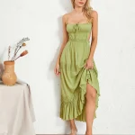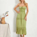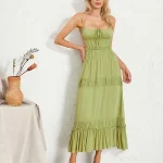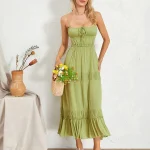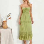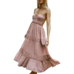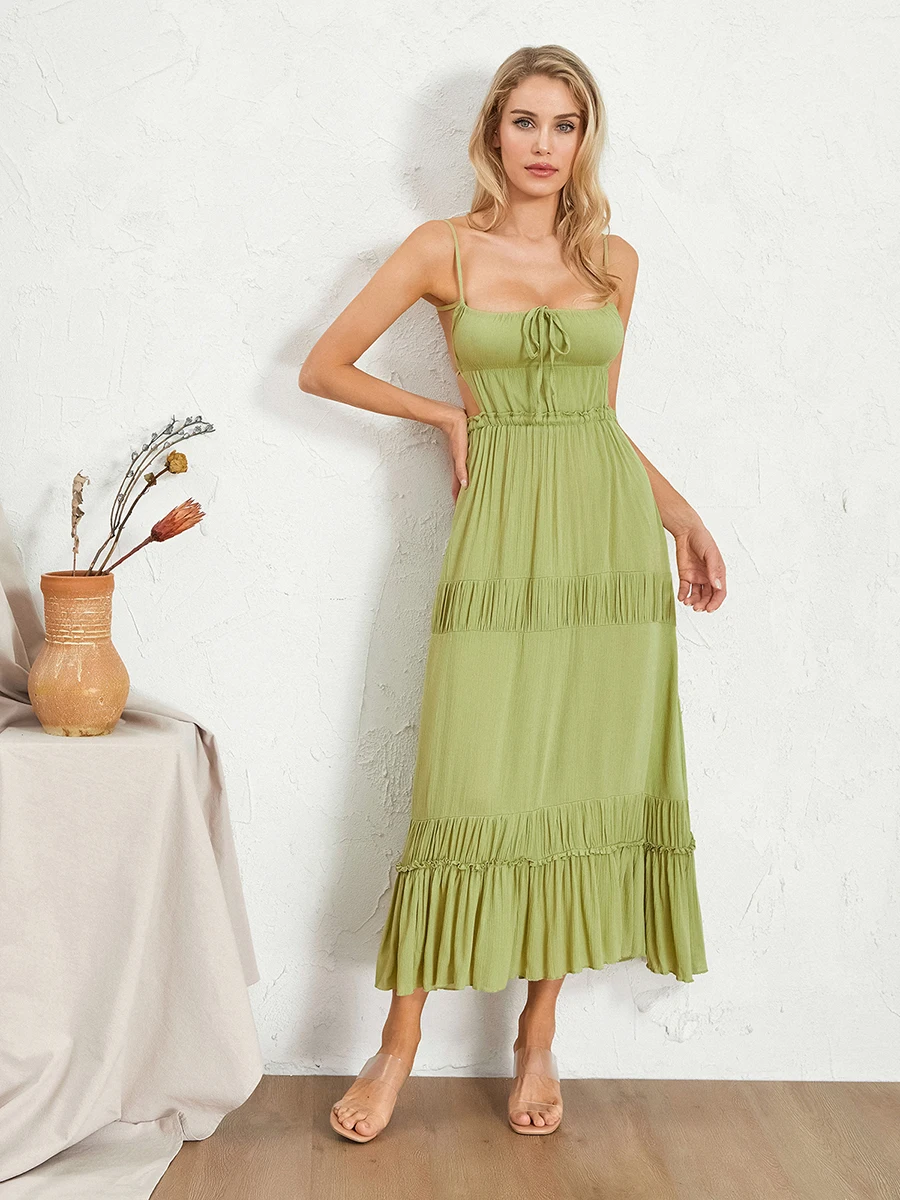 Solid color, adjustable spaghetti straps and sleeveless, bandage and backless, summer dresses for women, ruffled hem, ankle length and A-line design make the legs more slender and make you look mer.
