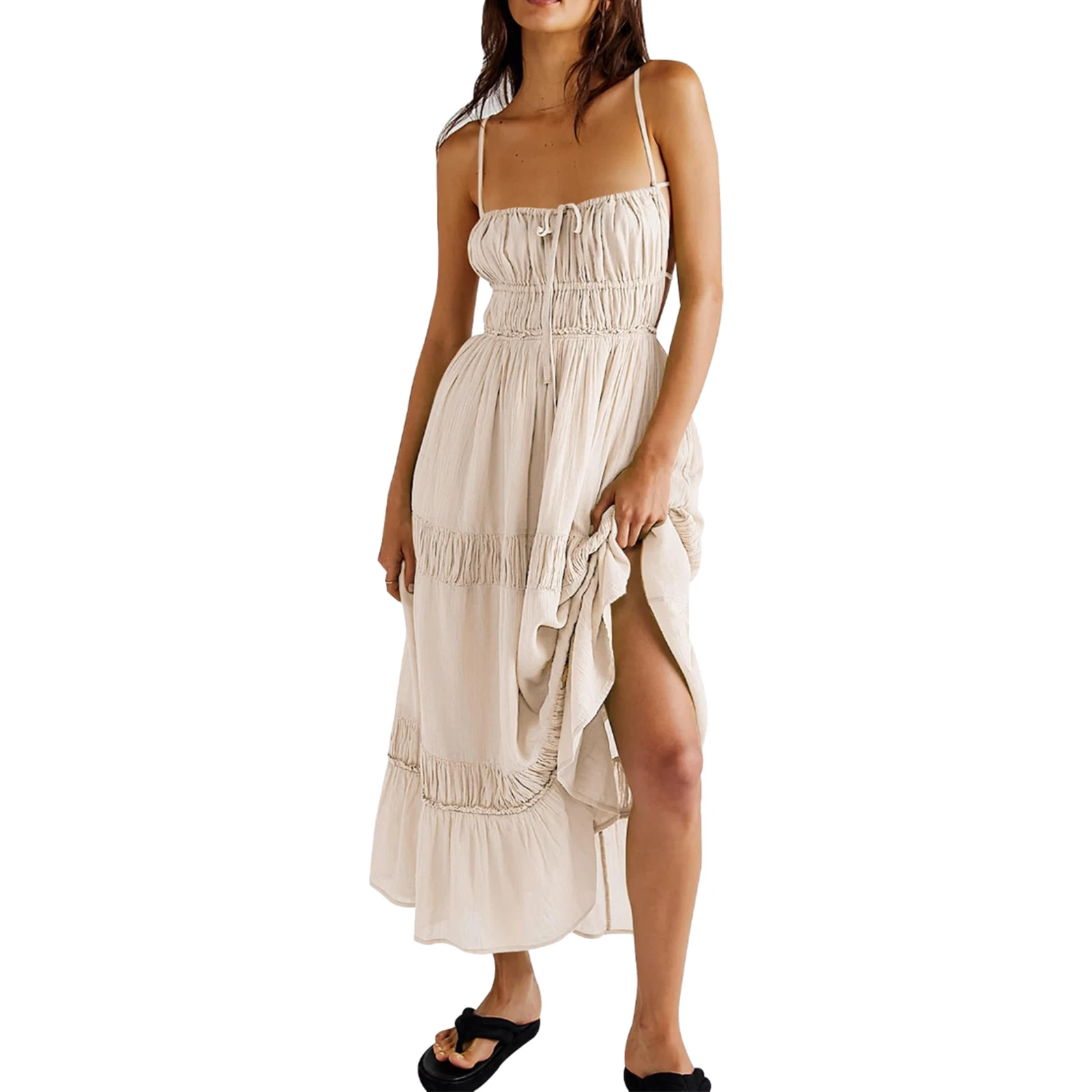 Women Sleeveless Beach Dress Ruffled Hem Summer Backless Party A-Line Dress for Cocktail Beach Streetwear