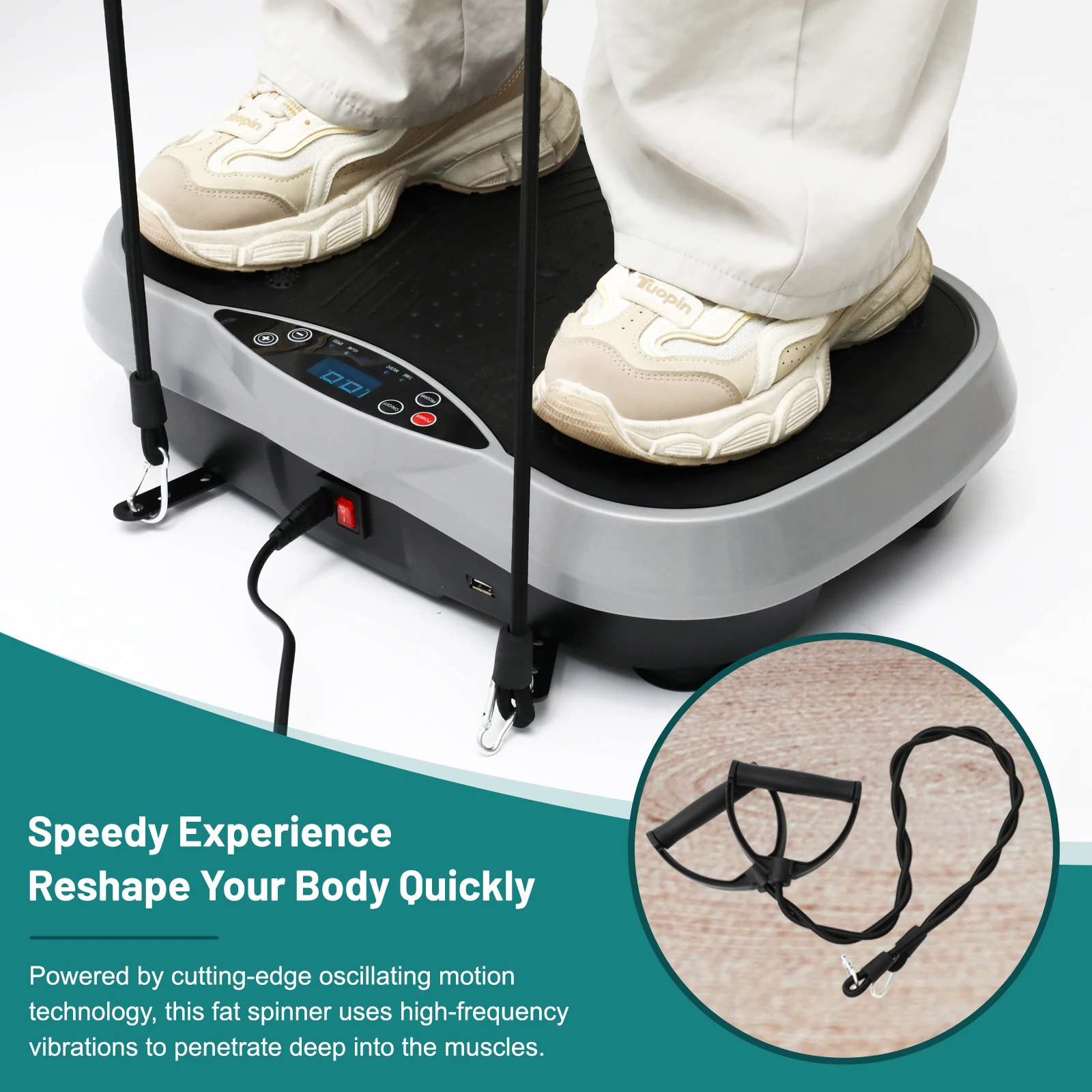 This fat-burning machine is equipped with a powerful high-torque motor, 99 adjustable speed levels, and 5 workout programs to help you achieve your fitness goals with ease. The digital LCD display shows your workout data clearly, while the smart remote control makes operation convenient. You can easily create a personalized workout plan. High-frequency vibration reaches deep into muscles, promoting fat burning, muscle strength, and flexibility. The unique massage function helps relieve muscle tension, improve blood circulation, and restore vitality. Suitable for all ages and fitness levels, this machine allows you to enjoy a fun and healthy workout with your family. Choose this fat-burning machine and start your new healthy lifestyle today!